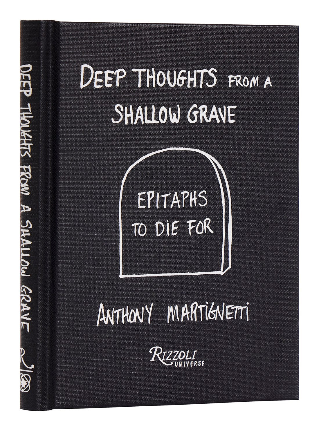 A gloriously dark book filled with witty illustrations about life and death, Deep Thoughts from a Shallow Grave celebrates life in its humorous and often satirical confrontation of death. Conceived, written and drawn by Anthony Martignetti over the past few years, these tongue-in-cheek illustrated tombstones were first shared with friends who needed a laugh, bringing some (albeit dark) humor to their days when they were otherwise going through tough times. More than one hundred of these off-kilter meditations on life and death are now collected in this book. Handwritten epitaphs such as “Waiting to inhale” and “There are fifty better ways to leave your lover” will have readers chuckling and prompt reflection on the absurdity of this fleeting and precious thing we call life.
