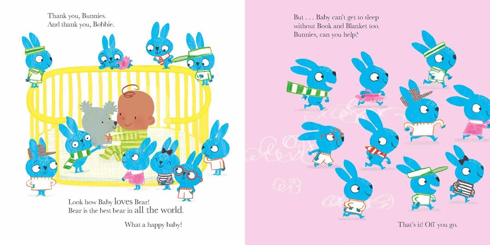 What do you need for the perfect bedtime? A beloved bear, book, and blanket, of course! Join in the fun with ten enthusiastic and energetic bunnies as they try to find the special things Baby needs to settle down to sleep. Oh — and don't forget the all-important goodnight kiss, too!