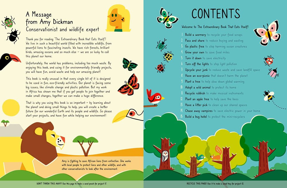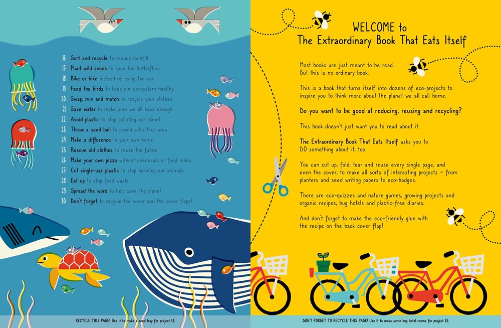 You can cut up, fold, tear, and reuse every single page— even the cover—to make all sorts of great projects, from planters and seed writing papers to eco-badges. There are eco-quizzes and nature games, growing projects, and organic recipes, bug hotels, and plastic-free diaries.